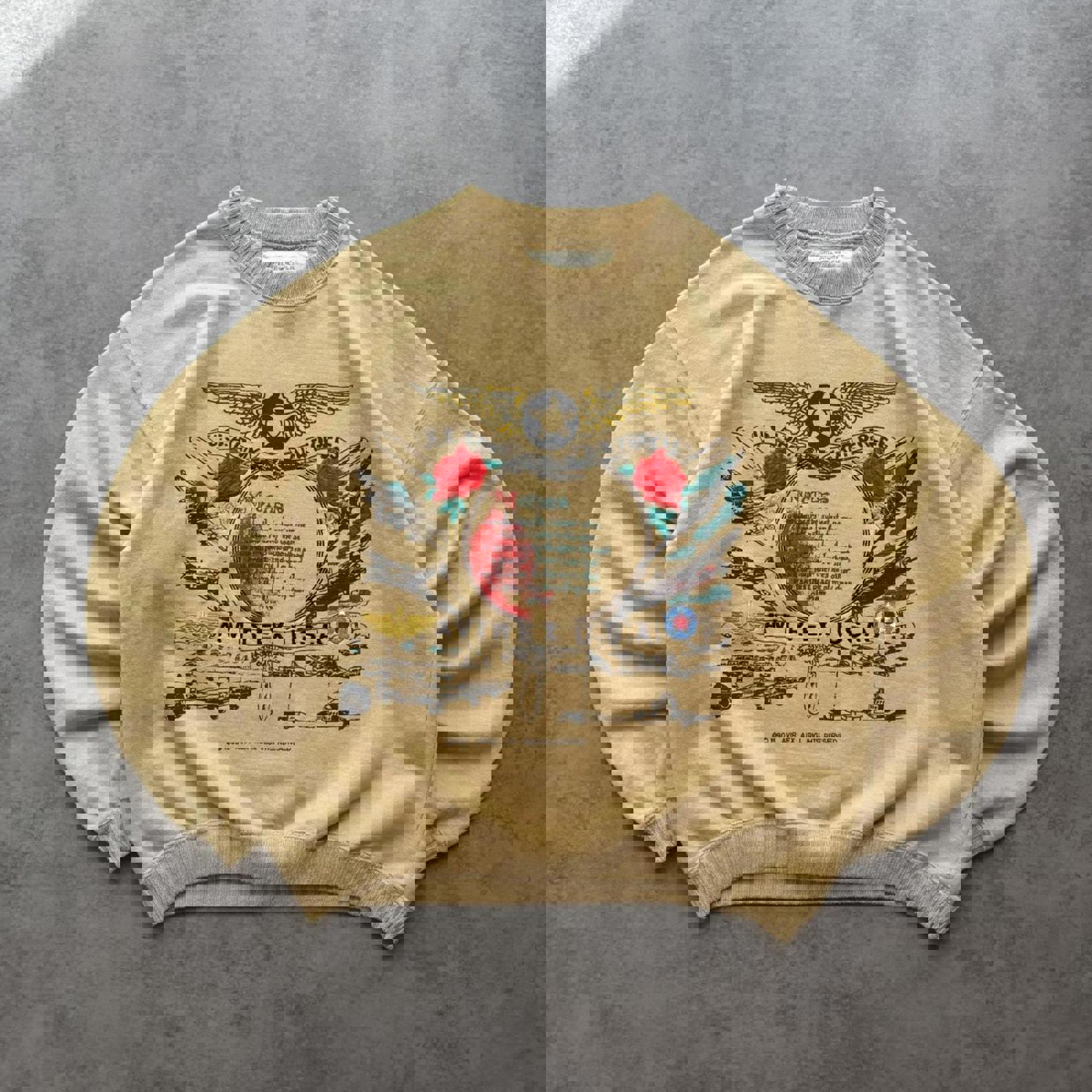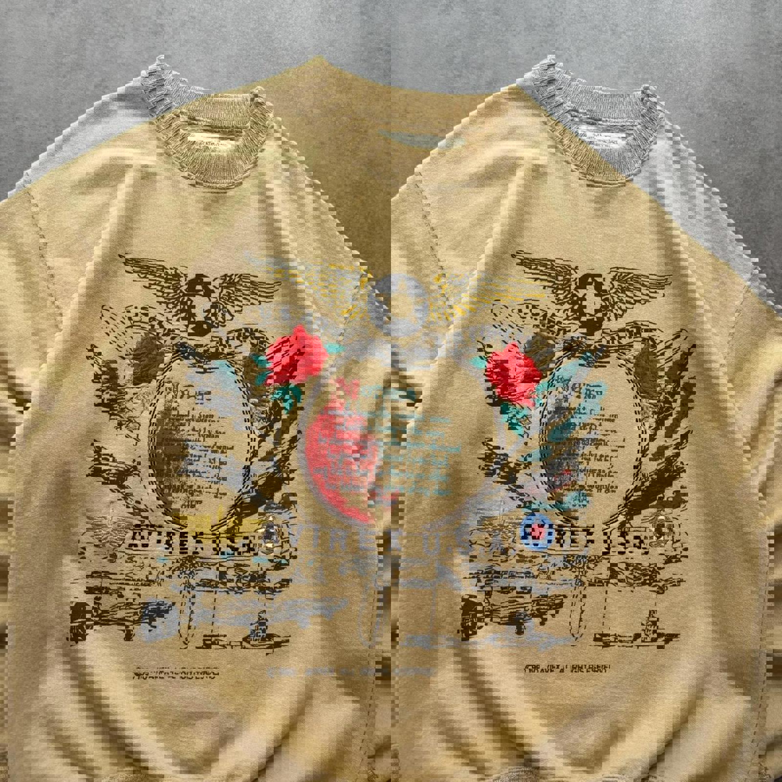 Vintage Avirex USA 1990 Graphic Boxy Sweatshirt in Beige