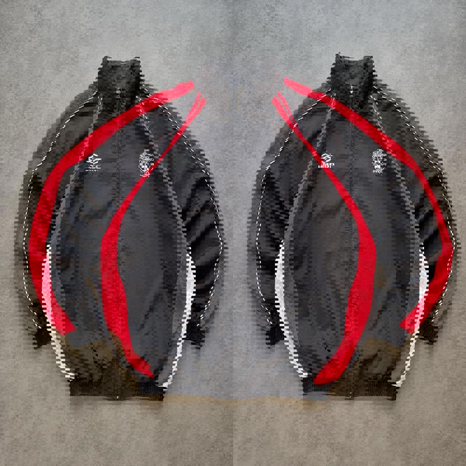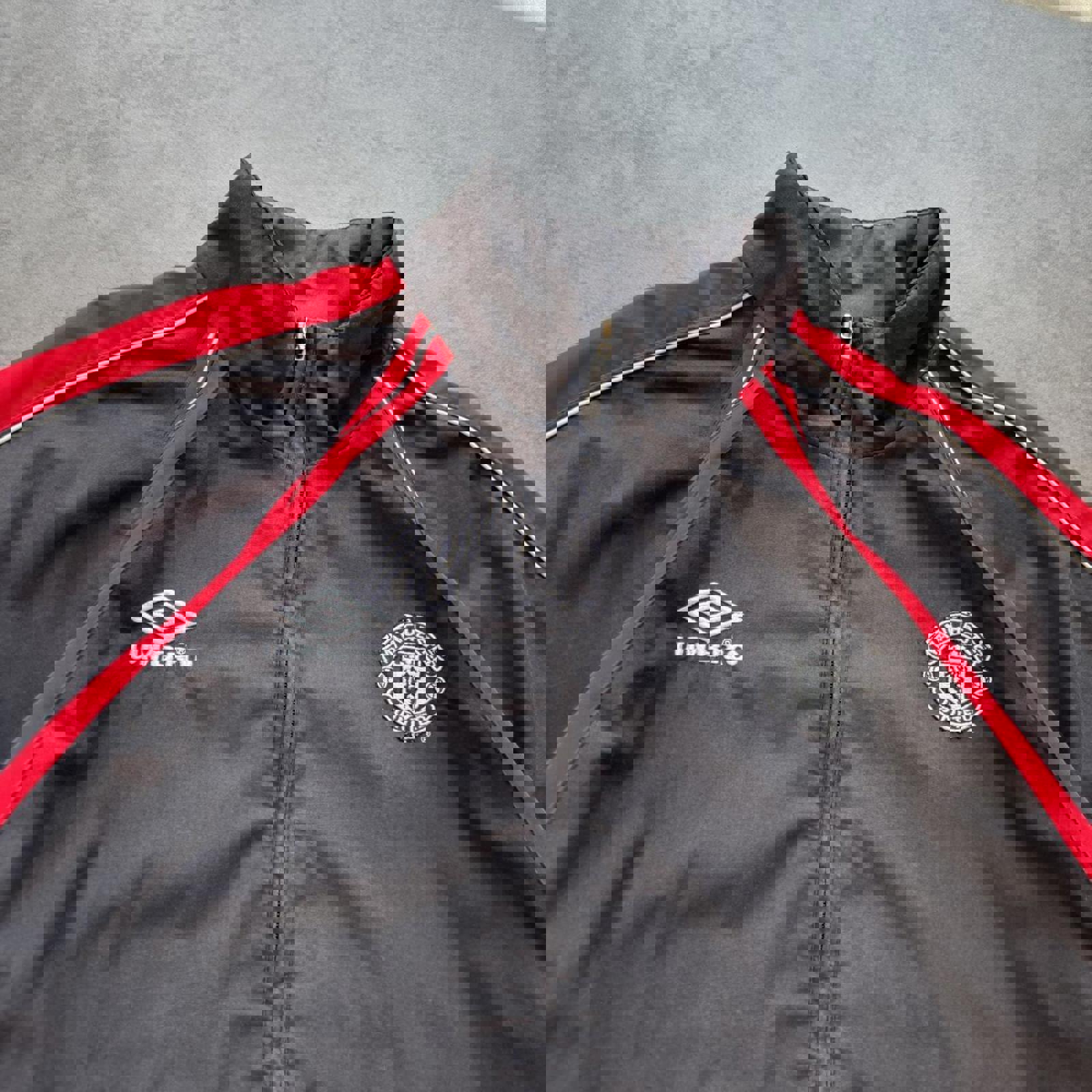 Vintage Umbro Manchester United 1992-96 Zip Up Training Track Jacket in Black and Red Measurements: 📏Size - Medium 📏Pit to Pit - 26 1/2 inches 📏Length - 28 inches No signs of flaws or defects ❌✈️ SKU: 9072